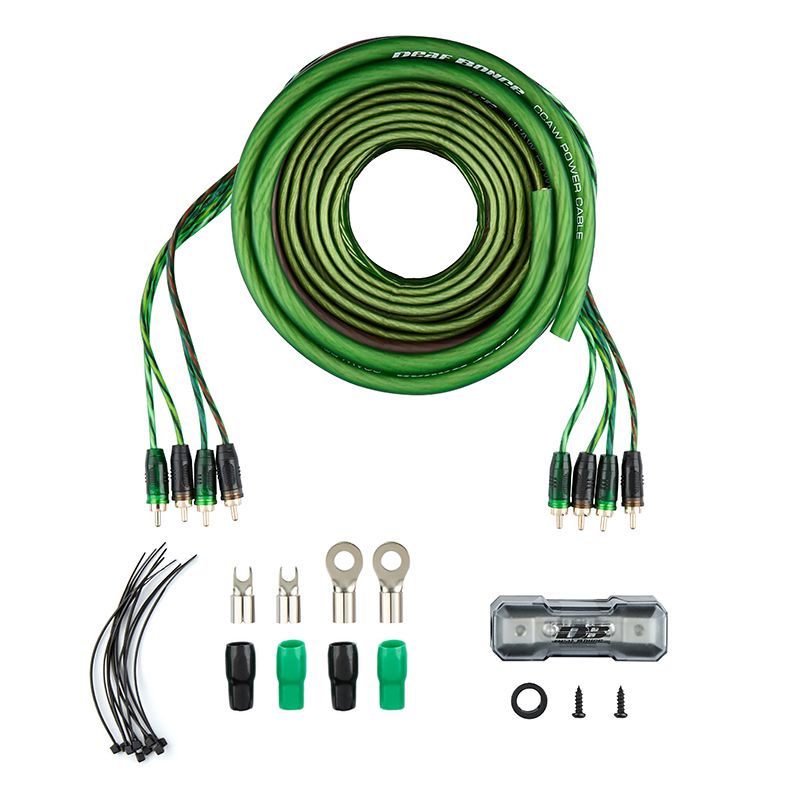 Профессиональный комплект кабелей и аксессуаров для установки автомобильного усилителя.