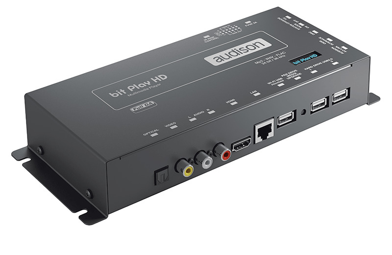 Bit Play HD способен воспроизводить самый разный медиаконтент с HD-качеством: аудио, видео, фото. Однако прежде всего это плеер с аудиофильской родословной Audison, готовый стать бескомпромиссным источником звучания для усилителей и динамиков сколь угодно высокого уровня. Плеер включается в аудиосистему дополнительно к имеющемуся источнику воспроизведения – которым чаще всего окажется штатное головное устройство. В силу компактных размеров и отсутствия органов управления на корпусе, bit Play HD можно разместить в любом желаемом месте — например, в перчаточном ящике. Поддерживается воспроизведение музыкальных файлов различного формата: как сжатых (MP3 и т.д.), так и lossless (сжатие без потерь) FLAC, а также несжатых WAVE. Даже при воспроизведении файлов стандартного разрешения (16 бит / 44,1 кГц, как у компакт-диска CD-DA) качество звучания отвечает самым высоким стандартам, а использование HD-аудиофайлов разрешением до 24 бита / 96 кГц (макс.) поднимет планку качества еще выше. Плеер оснащен цифровым оптическим аудиовыходом TOSLINK, а также парой аналоговых выходов.