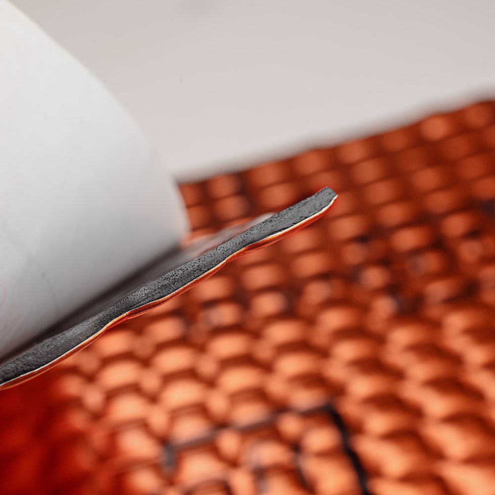 Лицевое покрытие материалов — алюминиевая фольга оптимальной степени жесткости и толщины (100 мкм), обеспечивает механическую защиту мастичного слоя и повышает его виброакустические свойства.