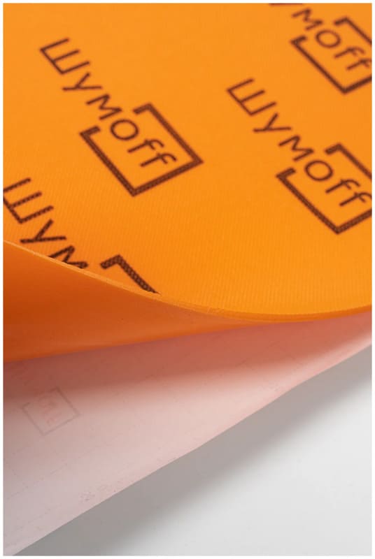 Монтажный слой защищен антиадгезионной бумагой с фирменным логотипом Шумофф и линовкой. Материал имеет оранжевый цвет и тиснение с лицевой стороны в виде сетки.